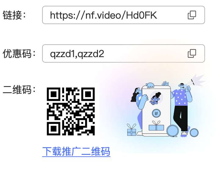 通过链接 https://nf.video/Hd0FK 输出优惠码 qzzd1,qzzd2 即可获取一天体验卡